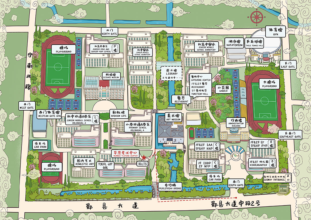 华茂考试中心位于宁波华茂外国语学校内(浙江省宁波市鄞州区鄞县大道中段2号),所有考生由宁波华茂外国语学校南侧步行桥进出,学校南门距离南侧步行桥约5分钟步行路程。