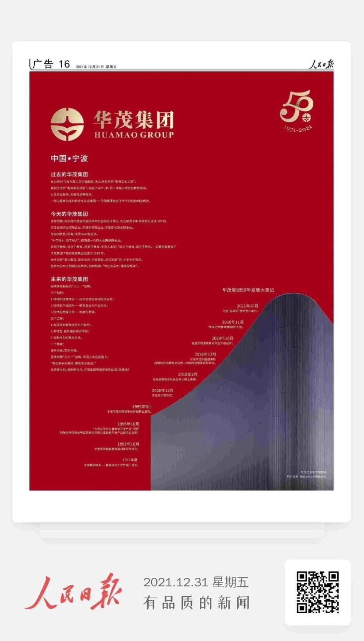 华茂集团50周年登《人民日报》
